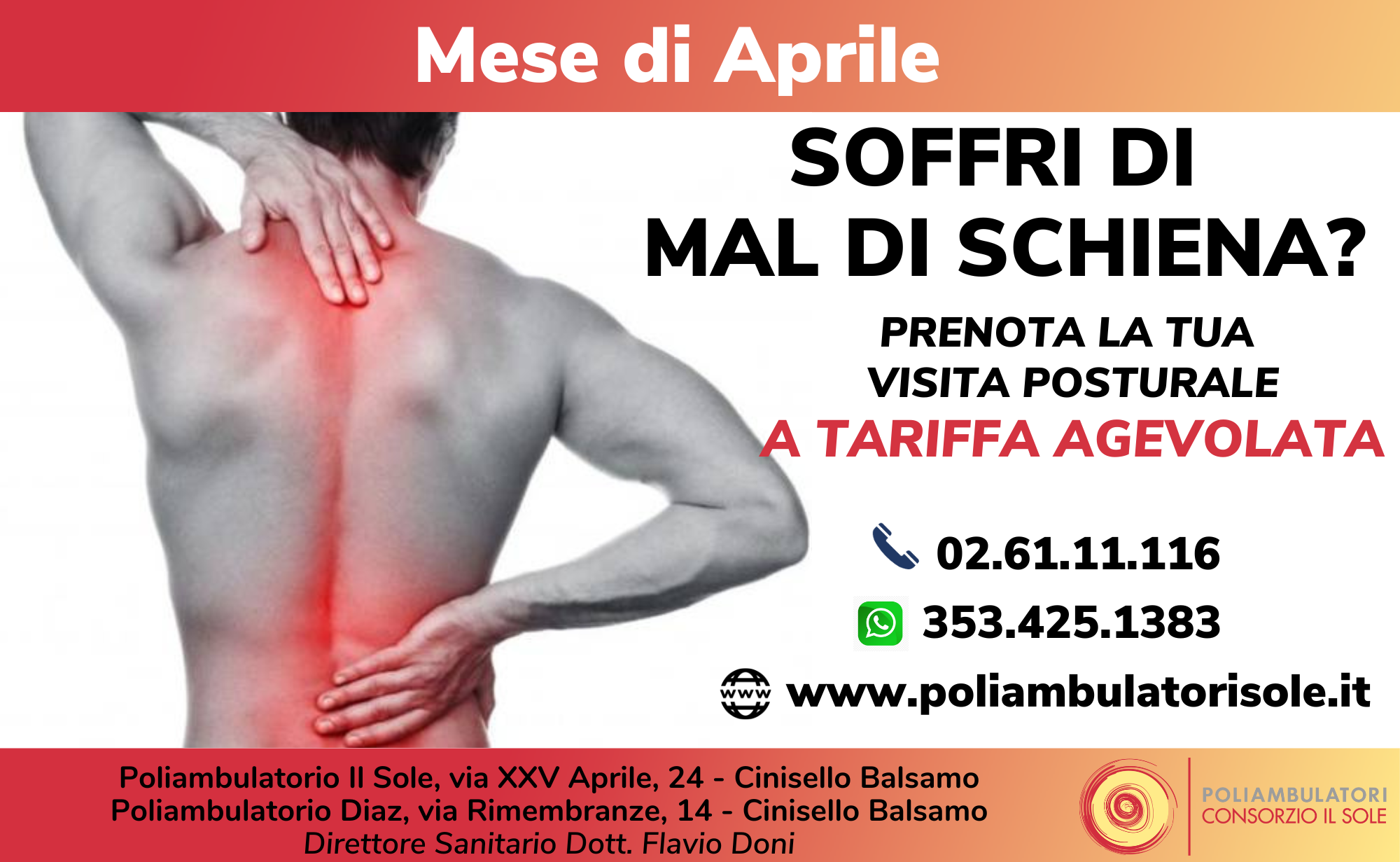 Quando è causata da posture scorrette mantenute per tempi prolungati, è definita lombalgia posturale. Il dolore non è altro che un segnale di allarme della colonna vertebrale che cerca di far capire che la stiamo maltrattando e che dobbiamo cambiare posizione.